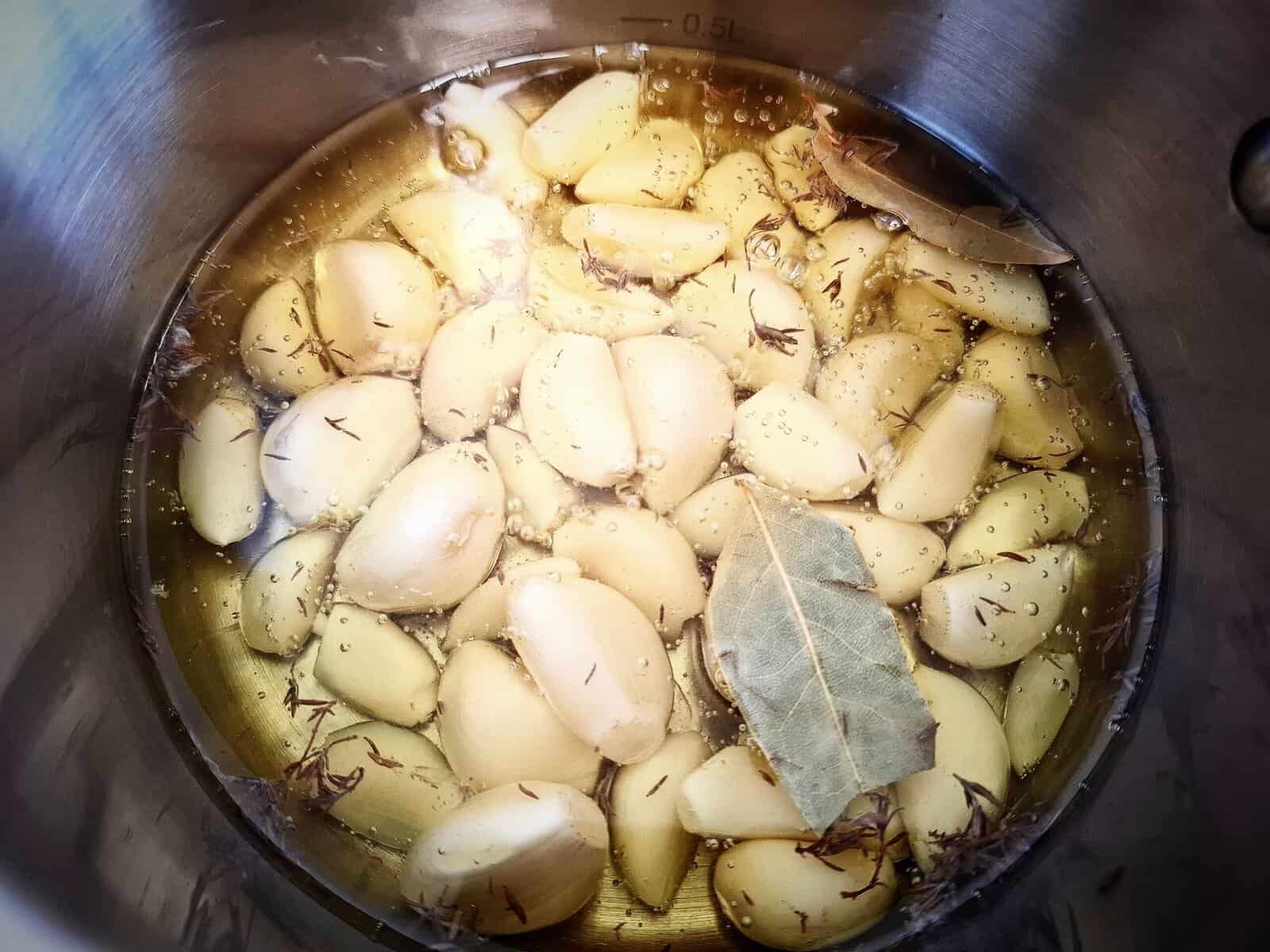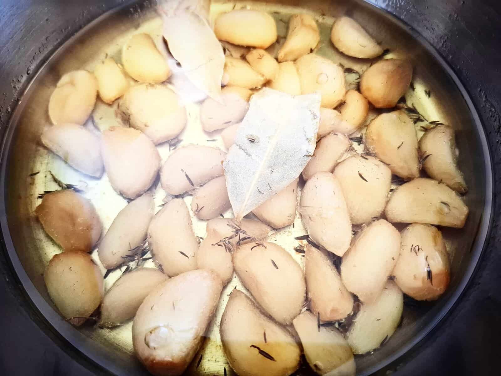 Hint: Alternatively this garlic confit recipe stove top method can be made in the oven.